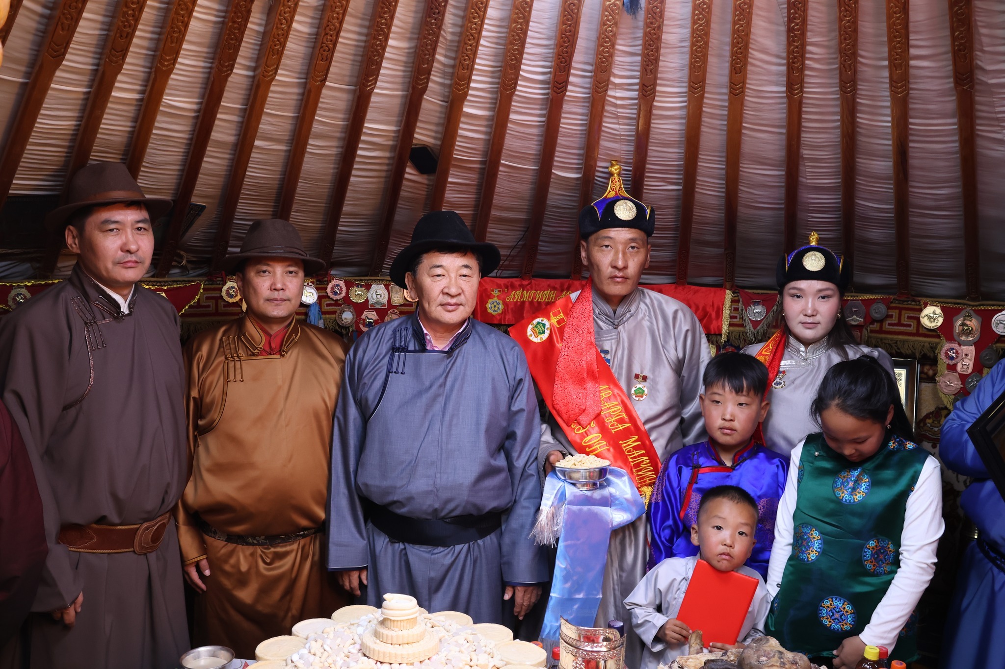 Өнөөдөр Монгол улсын Улсын Их хурлын гишүүн, Засгийн газрын гишүүн, Зам, Тээврийн сайд Б.Дэлгэрсайхан, аймгийн иргэдийн Төлөөлөгчдийн хурлын дарга Н.Алдарбаяр, аймгийн Засаг дарга О.Батжаргал нар шинээр төрөн гарсан Улсын аварга малчдад цол тэмдгийг гардуулан өглөө.
