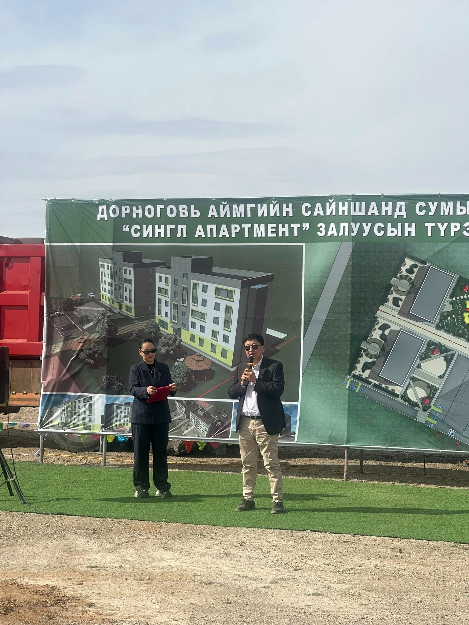 "Сингл апартмент" орон сууцны төслийг Дорноговь аймгийг зорин ирж буй залуучуудын амьдрах таатай орчныг бүрдүүлж, тогтвор суурьшилтай ажиллах нөхцөлийг бүрдүүлэх зорилгоор 21 аймгаас анх удаагаа аймагтаа хэрэгжүүлж байна.