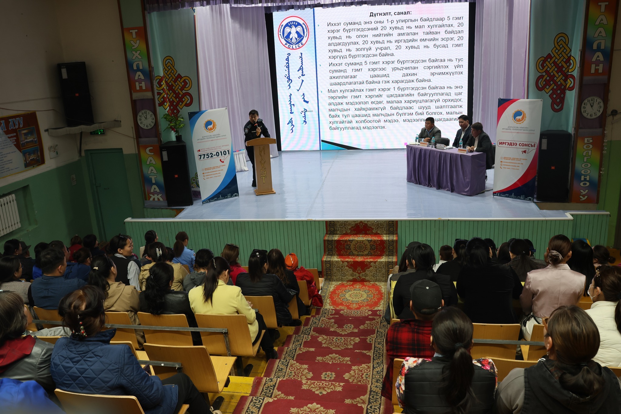 Иргэдээ сонсъё арга хэмжээний хүрээнд аймгийн ИТХ-ын дарга бөгөөд ГХУСАЗСЗ-ийн дарга Н.Алдарбаяр, тус сумдаас аймгийн ИТХ-ын төлөөлөгчөөр сонгогдсон төлөөлөгч А.Дааганчулуун, С.Дамдинсүрэн, аймгийн Гэмт хэргээс урьдчилан сэргийлэх ажлыг зохицуулах салбар зөвлөлийн гишүүн байгууллагууд Дэлгэрэх, Иххэт, Алтанширээ сумдад ажиллалаа.