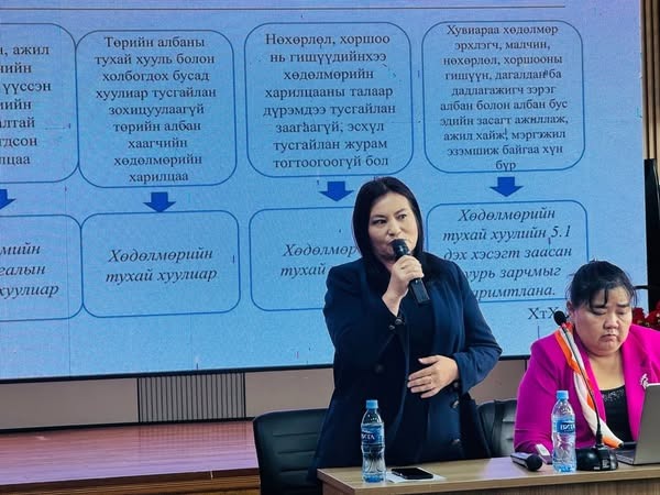 Аймгийн ИТХ-ын иргэний танхимаас хөдөлмөрлөх эрх, зөрчлийн тухай хуулийн сургалтыг