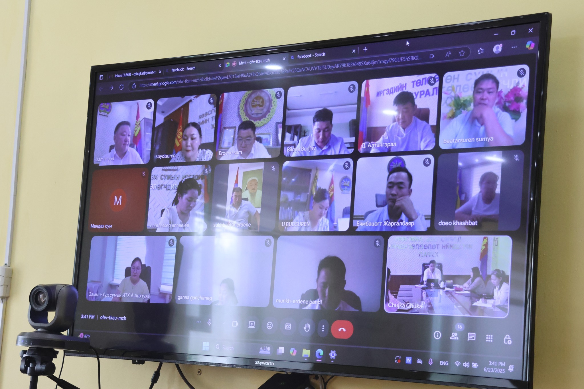 Өнөөдөр 14 сумын иргэдийн Төлөөлөгчдийн Хурлын ажлын албатай цахим уулзалт хийлээ. Уулзалтаар сумдын өнөөгийн нөхцөл байдал, байгууллагын гүйцэтгэлийн төлөвлөгөөний хагас жилийн тайлан мэдээг сонсож, цаашид үндсэн чиг үүргийнхээ ажлыг үр дүнтэй, хүртээмжтэй хийж хэрэгжүүлэх үүрэг, чиглэл өглөө.