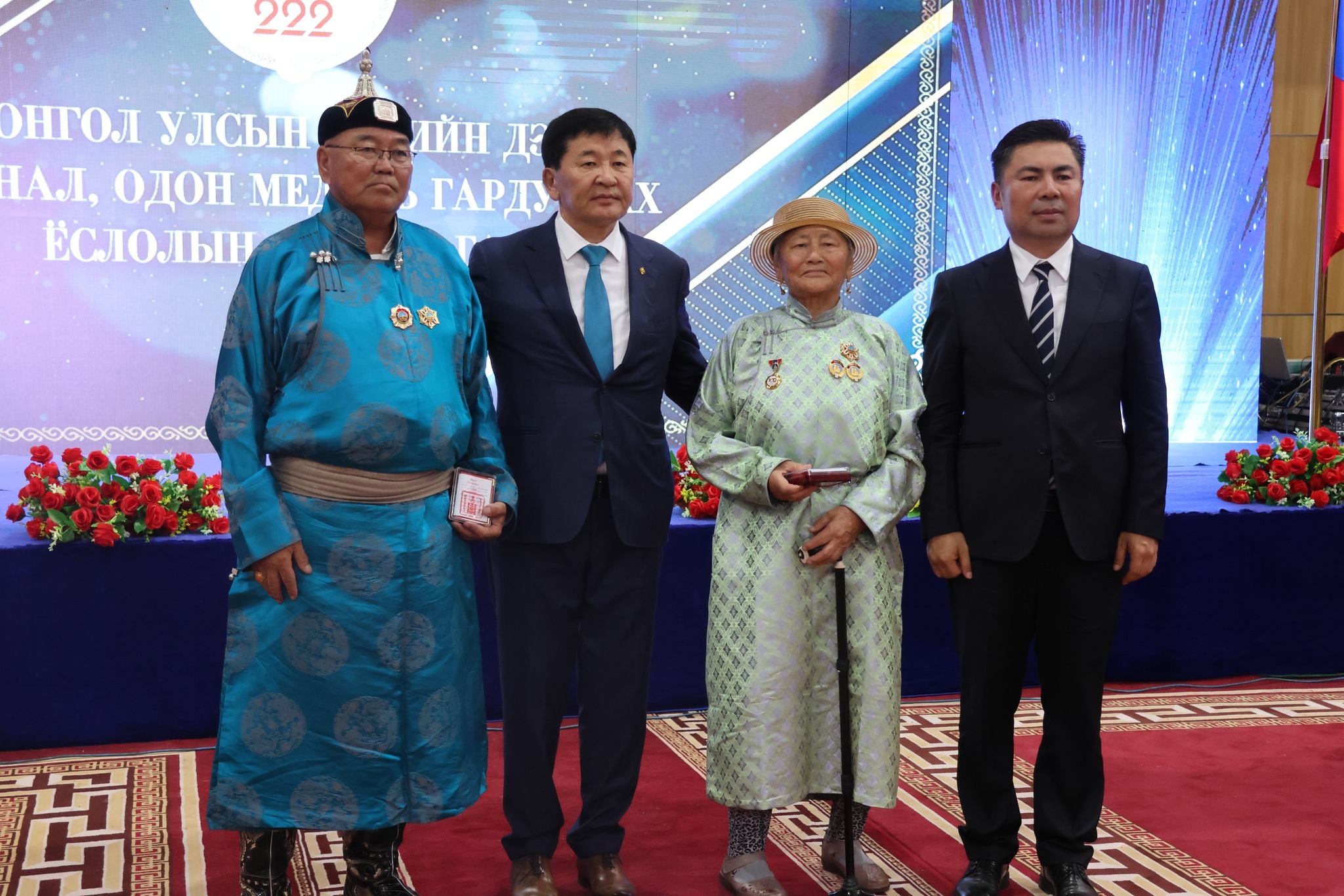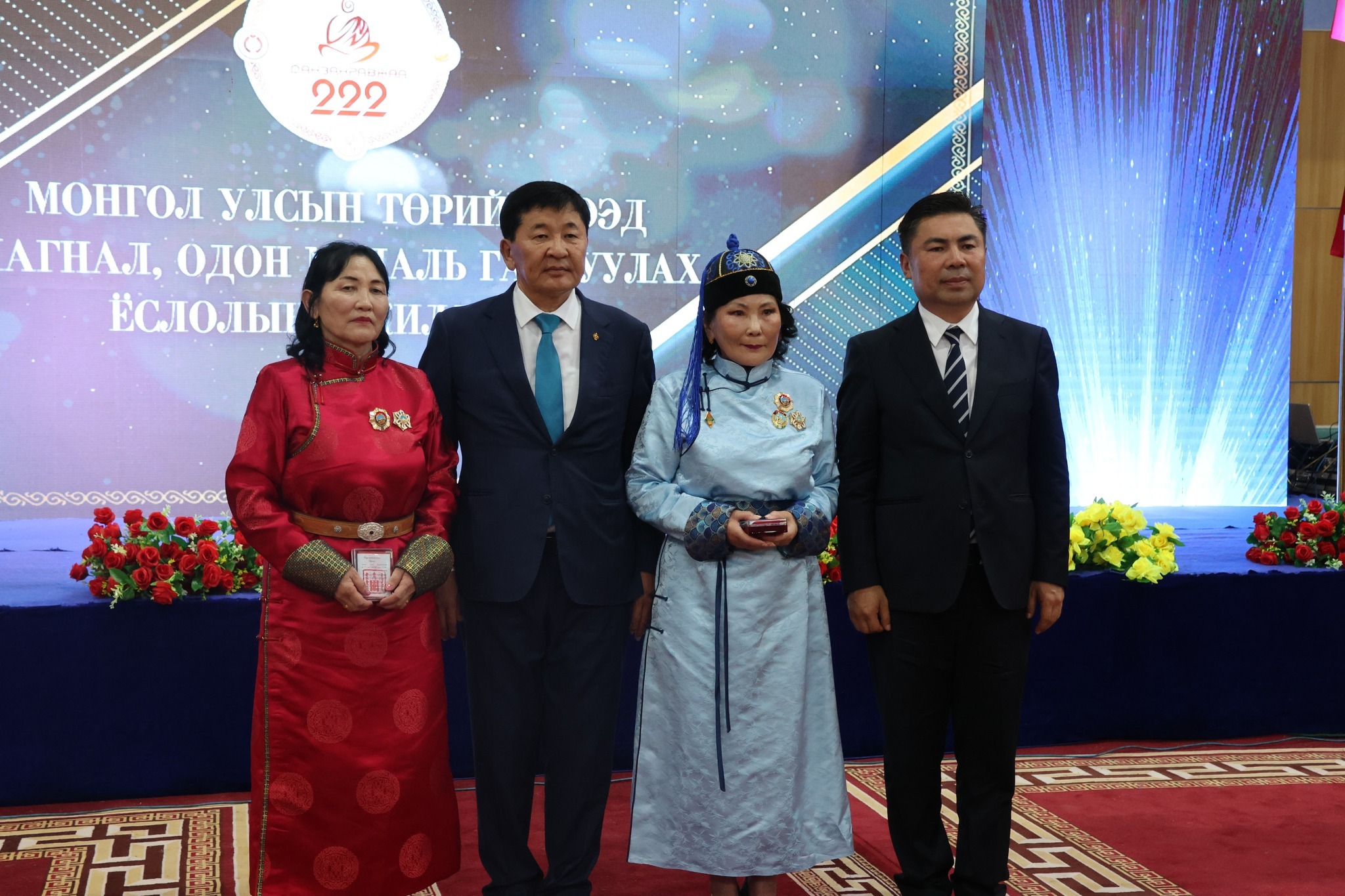 АРДЫН ХУВЬСГАЛЫН 104 ЖИЛ, ДОРНОГОВЬ АЙМАГ БАЙГУУЛАГДСАНЫ 94 ЖИЛ, НОЁН ХУТАГТ ДУЛДУЙТЫН ДАНЗАНРАВЖААГИЙН МЭЛМИЙ ГИЙСНИЙ 222 ЖИЛИЙН ОЙН БАЯР НААДМЫН БАЯРЫН ХУРЛААР ТӨРИЙН ДЭЭД ОДОН МЕДАЛЬ, САЛБАРЫН ТЭРГҮҮНИЙ АЖИЛТНУУДАД ШАГНАЛЫГ ГАРДУУЛАН ӨГЛӨӨ