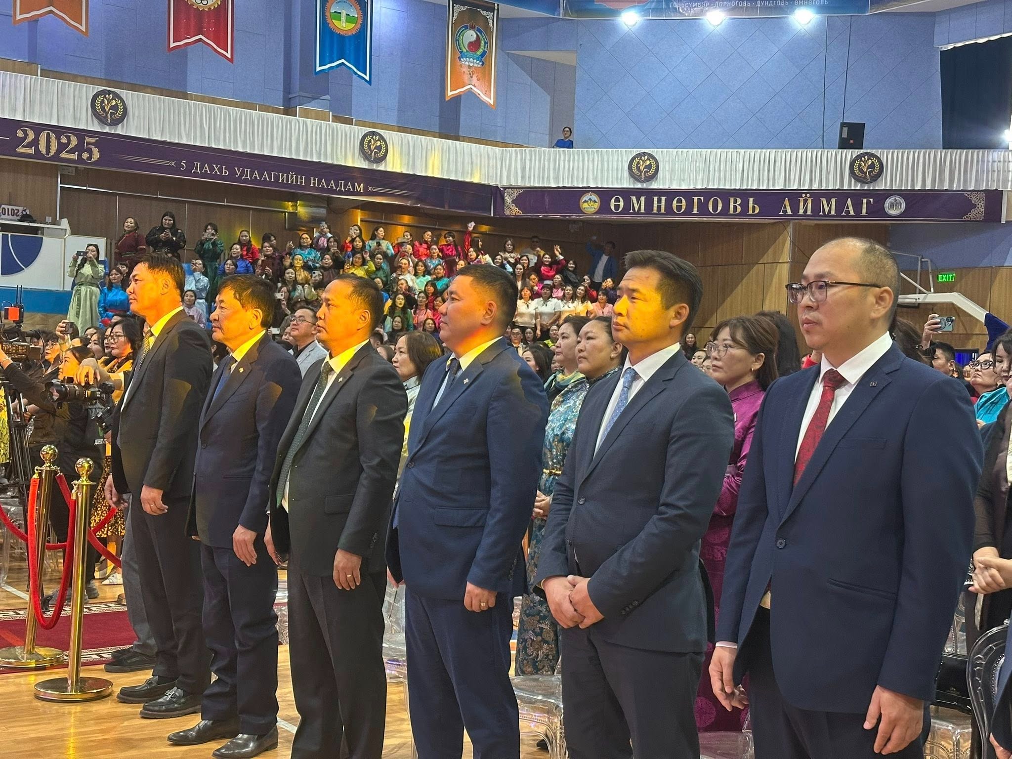 “Алтанзул-2025” наадамд говийн бүсээс сонгогдсон Монгол Улсын Их Хурлын гишүүн, Зам, тээврийн сайд, Дорноговь аймгийн Нутгийн зөвлөлийн тэргүүн Борхүүгийн Дэлгэрсайхан, Говийн бүсийн зөвлөлийн дарга бөгөөд Дорноговь аймгийн Засаг дарга Очирпүрэвийн Батжаргал, Дорноговь аймгийн ИТХ-ын дарга Найдангийн Алдарбаяр, Говьсүмбэр аймгийн ИТХ-ын дарга Ш.Билэггүмбэрэл, Говьсүмбэр аймгийн Засаг дарга Т.Бат-Эрдэнэ, говийн бүсийн багш, ажилчид оролцож байна.